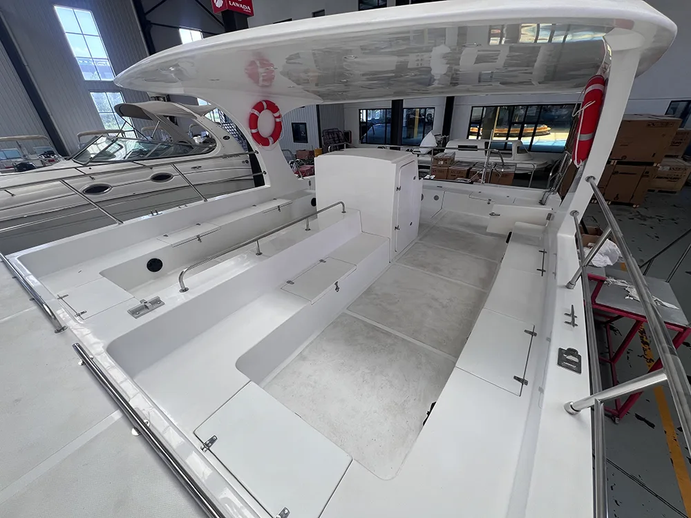 La Lawada®Il catamarano commerciale da 30 piedi può essere dotato di motore fuoribordo, doppio motore esterno o persino motore a bordo in base alle tue esigenze