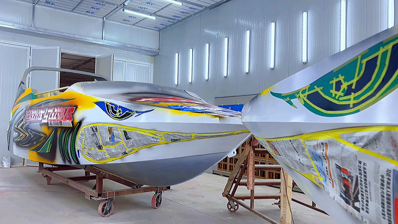 Le tue barche commerciali fanno ancora affidamento su adesivi per il colore e il design? È tempo di aggiornare, perché le barche commerciali Lawada hanno completamente abbandonato adesivi e adottato un processo di pittura.